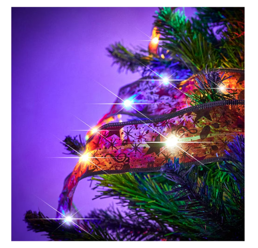Instalatie panglica luminoasa pentru bradul de Craciun, lumina calda - auriu, argintiu, rosu - 5M