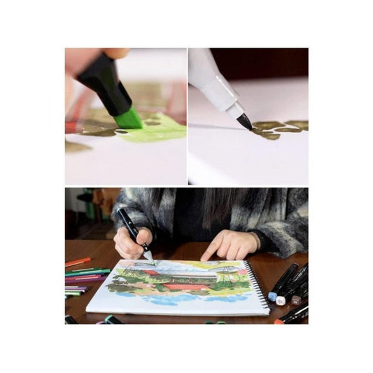 Set 80 carioci cu varf dublu, culori diverse, geanta depozitare inclusa