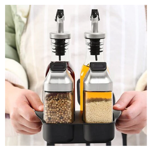 Set condimente/oliviera 5 piese pentru ulei și oțet din sticla cu suport