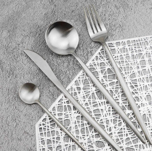 Set tacamuri 24 piese stil portughez, argintiu, otel inoxidabil