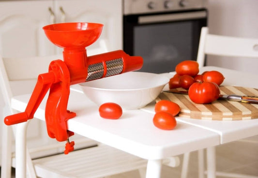 Storcator manual pentru rosii cu sita si cuva colectoare