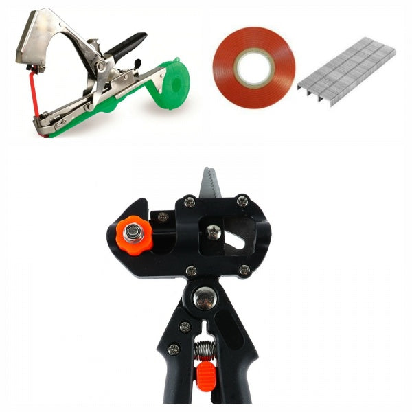 Dispozitiv de legat rapid plantele: rosii, castraveti, via etc.Aparatul foloseste banda si capse ca materiale consumabile pentru legarea plantelor.Limita de legare : 45 mm Ø (diametru)Date tehnice:Lungime: 355 mmLatime: 29 mmInaltime: 158 mmCleste profesional pentru altoit