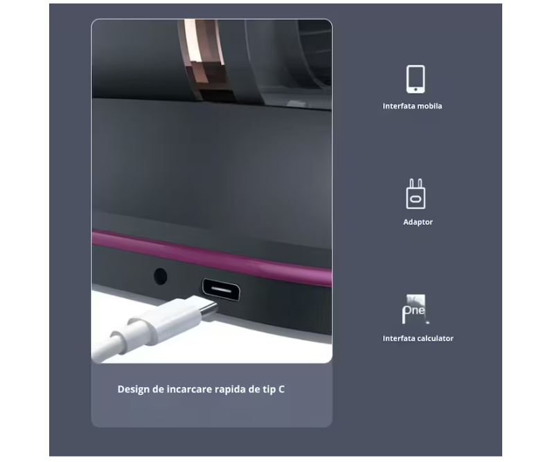 - Design Modern, in Culoarea Mov: Adauga un plus de stil in colectia ta de aparate de curatenie, fiind nu doar eficient, dar si placut estetic.