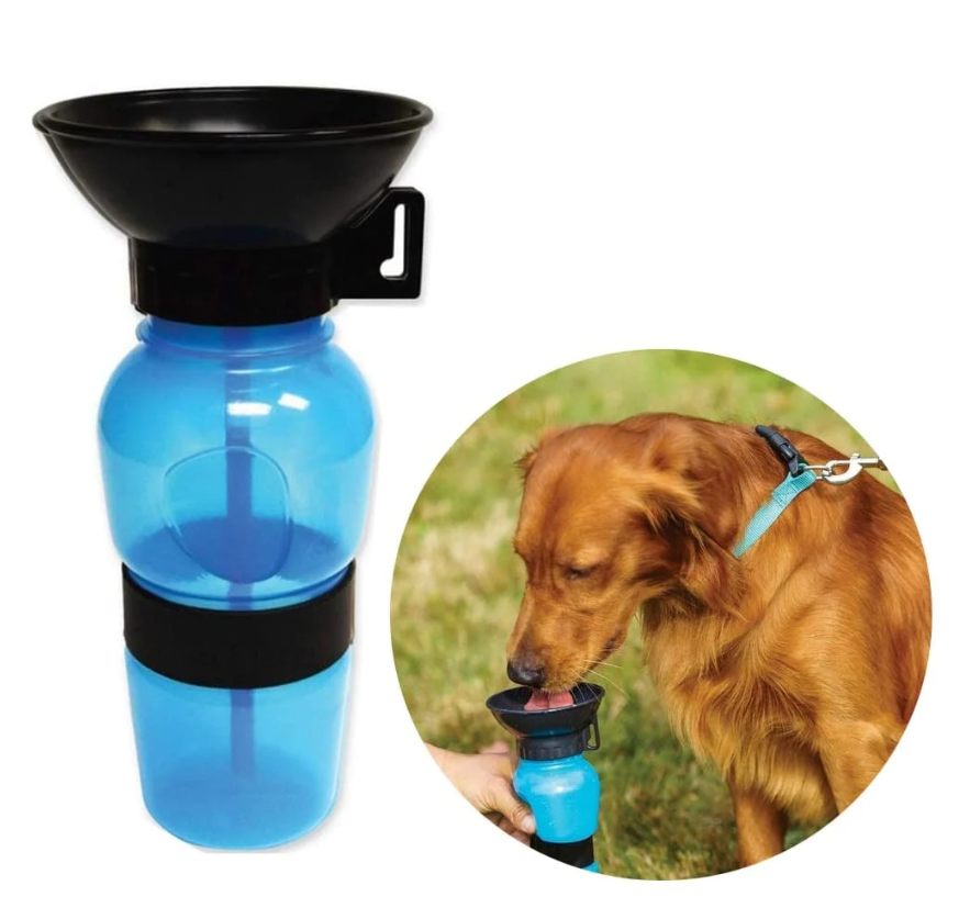 Pastrati-va cainele hidratat in timpul plimbarilor cu aceasta sticla Aqua Dog .Cand cainele este insetat, apasati pe sticla iar vasul de deasupra se va umple astfel incat partenerul canin sa se poata hidrata. Vasul se goleste inapoi in sticla cand presiunea este eliberata.Sticla Aqua Dog va permite o usoara si naturala hidratare a companionului canin indiferent de unde va aflati.Usor de luat cu tine.Se potriveste perfect in masina.Dimensiune: 21,5 x 10,7 x 10,7 cm.Capacitate: aproximativ 585ml.