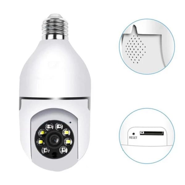 Camera de supraveghere creata atat pentru interior, cat si pentru exterior este extrem de usor de folosit, oferind acces in timp real la filmari datorita aplicatiilor gratuite pentru Android, iOS si calculator.Camera ofera posibilitatea de supraveghere in spatiul protejat prin rotire pe orizontala pana la 360° si pe verticala pana la 90°.Aceasta camera este ideala pentru a proteja tot ce conteaza pentru tine: casa, masina, afacerea, supravegherea copiilor si a animalelor de companie.Filmarile sunt stocate pe un card TF (se achizitioneaza separat) si ai acces la ele de pe telefonul mobil sau calculator.Camera integreaza cele mai noi tehnologii cum ar fi: soclu E27, senzor de miscare, alerta prin email, filmare noaptea, conectare la internet prin wireless si control de la distanta. Imaginile sunt clare, poti vedea oricand ce a inregistrat, ai acces la filmari si setari de oriunde din lume folosind internetul, filmeaza pe timp de noapte si are incorporat si un sezor de miscare si o functie inteligenta care iti trimite notificari prin email. Caracteristici:Conexiune telefon: iOS, AndroidStocare MicroSD: suport inregistrare alarma, inregistrare 24hProtocol: HTTP, UDP, SMTP, FTP, DHCP, DNS, NTP, UPnPSenzor: CMOSRezolutie: 1080PLentile: HD 3.6mmVedere nocturnaSenzor de miscareUtilizare: interior/exteriorImpermeabilitate: IP66Material: Plastic (ABS)Tensiune de alimentare: E27Dimensiuni: 15 x 6.5 cm