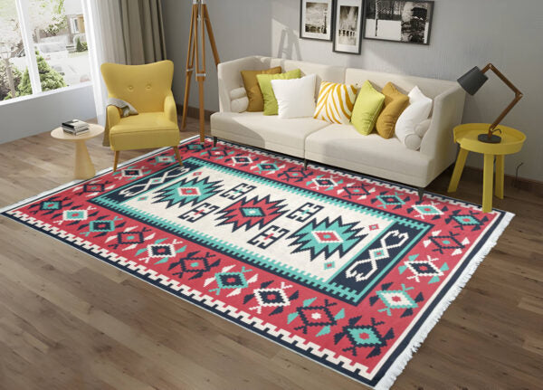 Covorul traditional cu model mexican care iti va lumina casa. Acest produs este foarte popular in toata Europa. Covorul este tesut mecanic din 100% polipropilena. Se termina cu franjuri pe ambele parti.