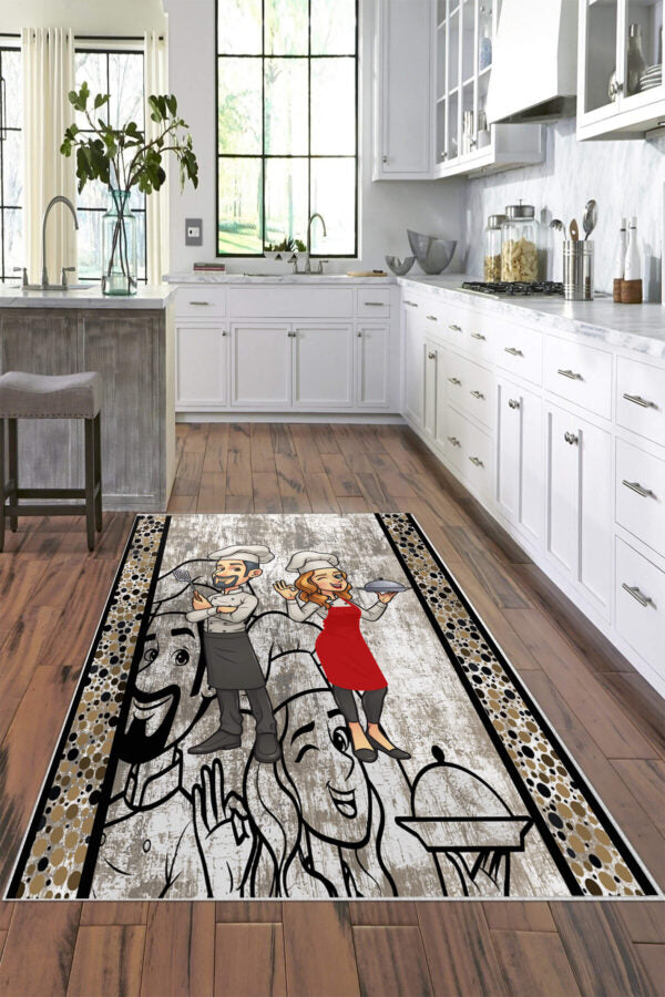 Fabricat 100% din poliester, acest covoraș are un suport de cauciuc antiderapant care îl va menține pe loc chiar și atunci când te grăbești prin casă încercând să aduci cina pe masă.
