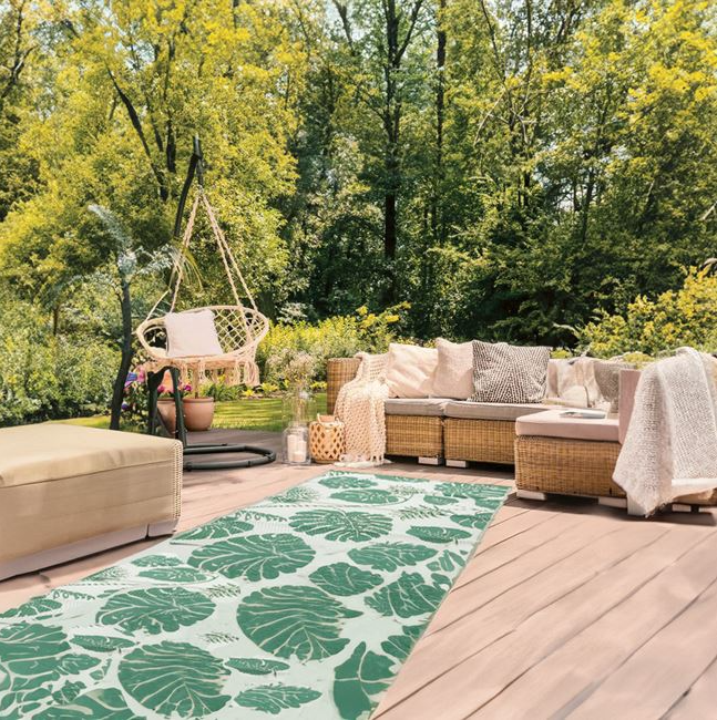 Covoras cu Doua Fete Verde Model Frunze Tropicale, pentru Spatii Exterioare 210x150cm