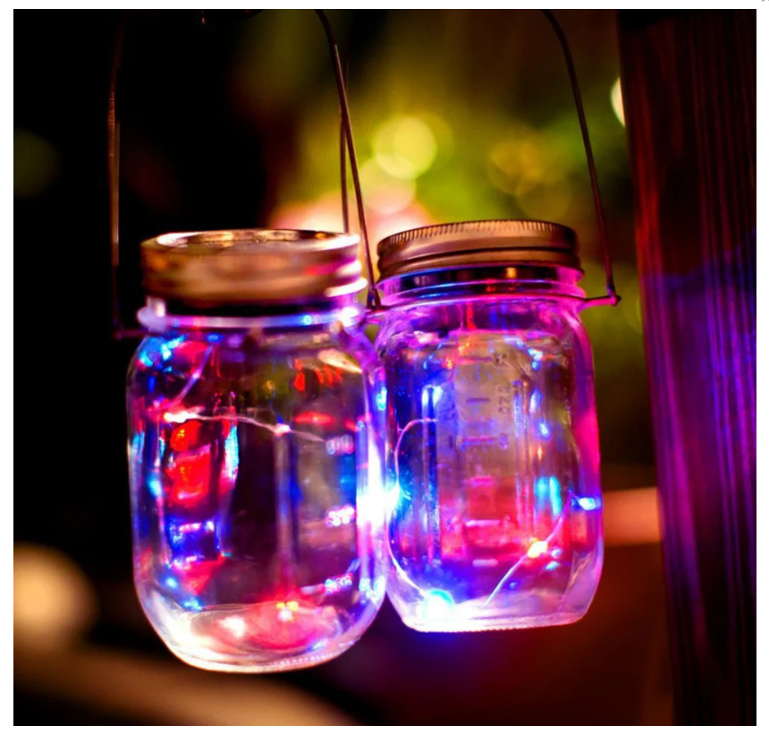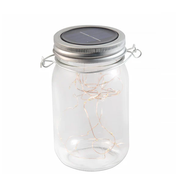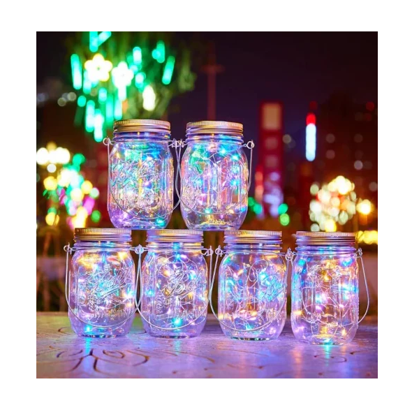 Decoratiune Lampa solara led in forma de borcan, lumina RGB