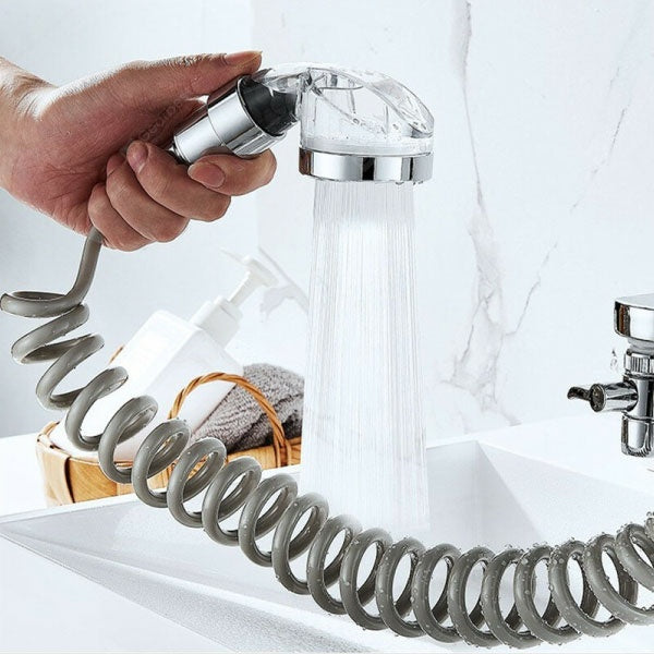 Cu un suport exterior manual, care este ușor, cu design ergonomic și foarte confortabil de ținut, puteți curăța, spăla părul, face baie copilului cu un jet de apă blând, care funcționează ca duș sau picături de ploaie și nu stropește apă peste tot.