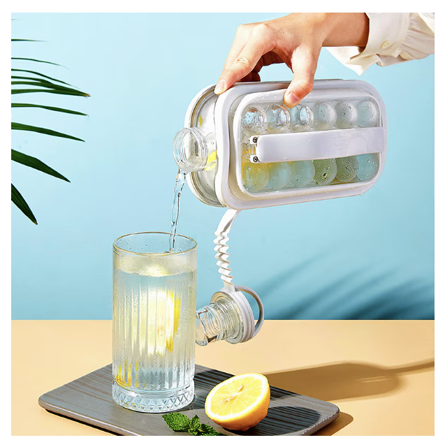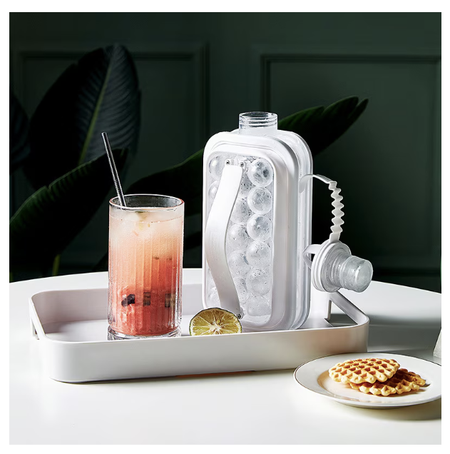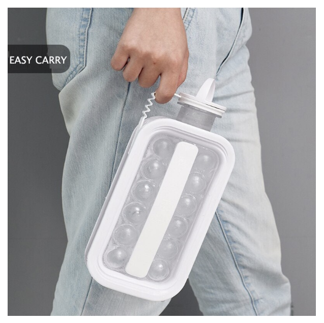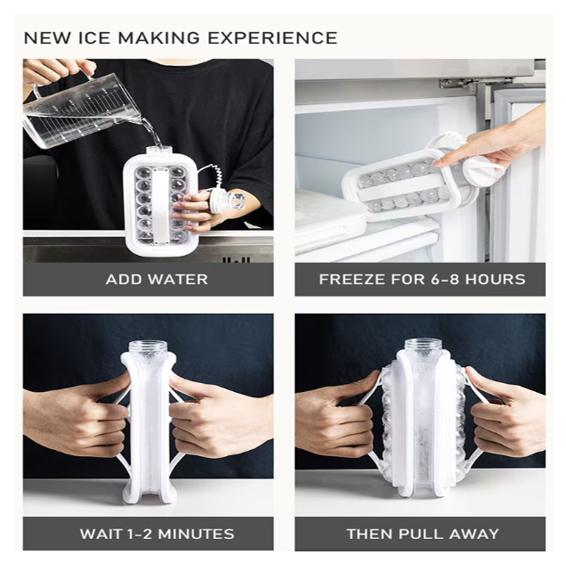 Forma cuburi de gheață 2 în 1 Portabilă este, așa cum sugerează și numele, ușor de transportat și utilizat în orice moment și în orice loc. Designul său compact și ergonomic se potrivește cu ușurință pe blatul bucătăriei sau pe barul dvs. și nu necesită instalații complicate. Este perfect pentru evenimente în aer liber, petreceri la piscină sau excursii de camping.