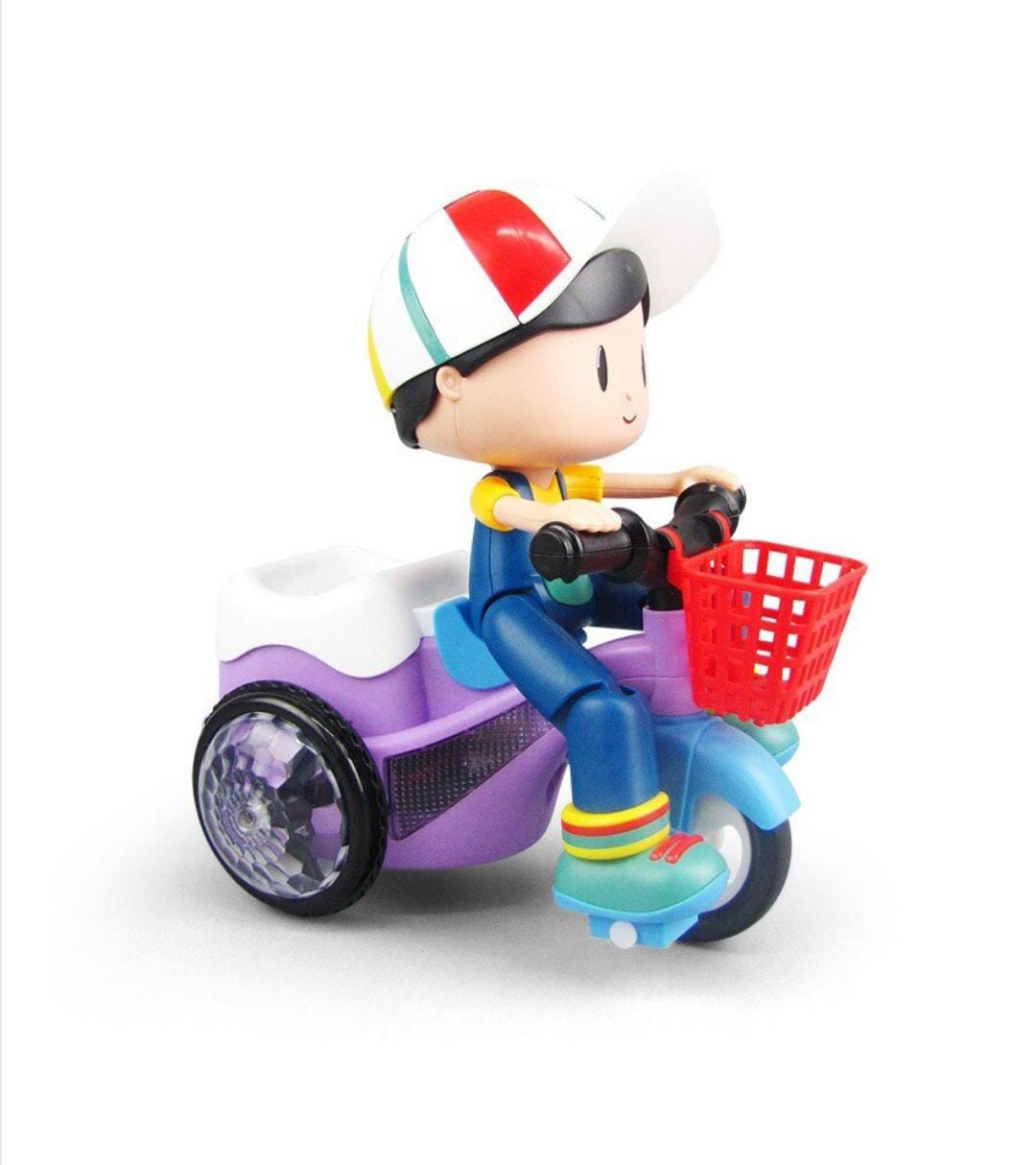 1. Partea inferioara a tricicletei va sprijini caruciorul sa stea si sa stea in picioare dupa ce a mers pentru o perioada de timp, apoi se va roti cu muzica si luminile.