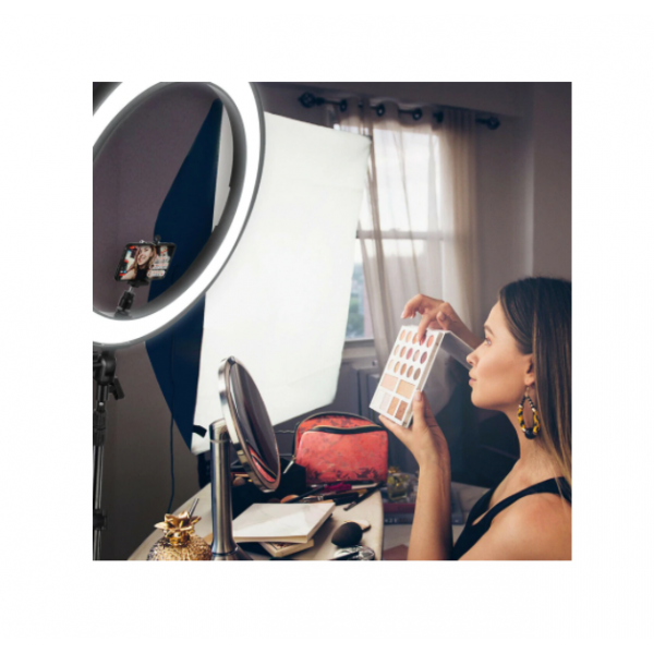 Toti makeup artistii ar trebui sa aiba un astfel de Ring Light in propriul studio. Lumina acesteia pune in evidenta frumusetea machiajului, fiind ideal pentru poze. Pozele pentru Facebook si Instagram vor fi perfecte! Produsul vine insotit de suport pentru telefon, perfect pentru a falicilita filmarile si pozele make-up artistilor, bloggerilor, vloggerilor si a tututor din aceasta bransa. Aveti posibilitatea sa adaptati oglinda pentru make up, suport de telefon sau aparat foto video, iar suportul (stativul) va ofera posibilitatea sa o fixati in pozitia ideala.
