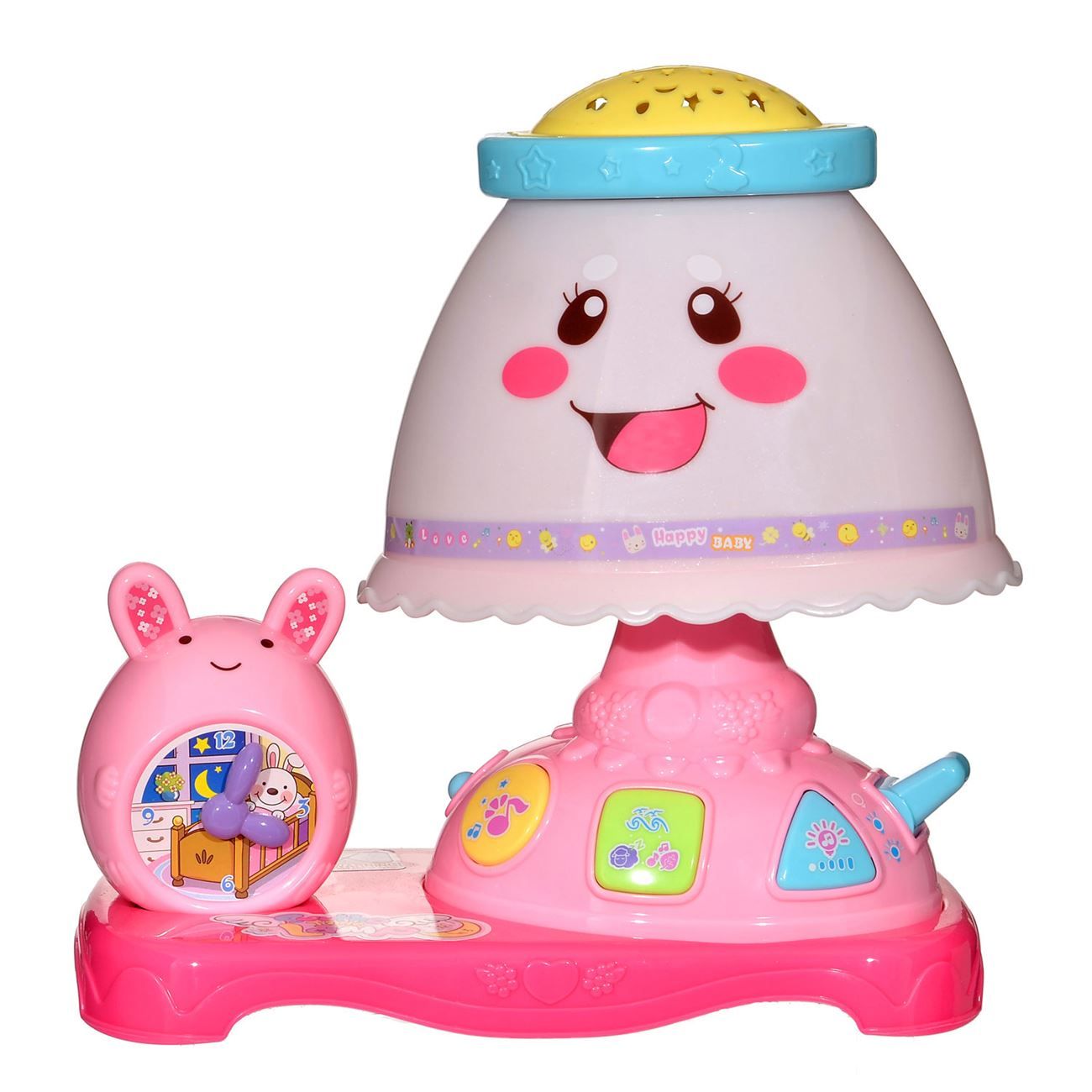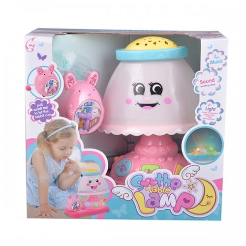 Lampa de veghe cu proiectii, muzicala, cu diferite moduri de functionare, cu design special pentru camera unei fetite.Lampa de veghe are proiectii – stelute colorate, are diferite butoane pentru diferite moduri de functionare:proiectii monocromatice sau proiectii colorate – cer instelat;5 grade de luminozitate ce pot fi setate;melodii;muzica linistitoare pentru somn;ceas separat de jucarie, cu mici rotite si o sforicica – daca copilul trage sforicica ceasul sub forma de iepuras fuge;Dimensiuni: 25 x 25 x 13 cmFunctioneaza cu 3 baterii AA 1.5V (neincluse)Varsta recomandata: de la nastere, 0 luni +
