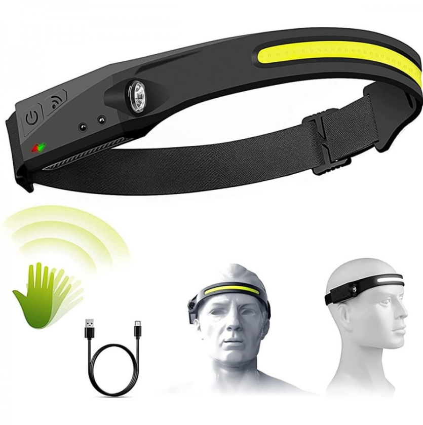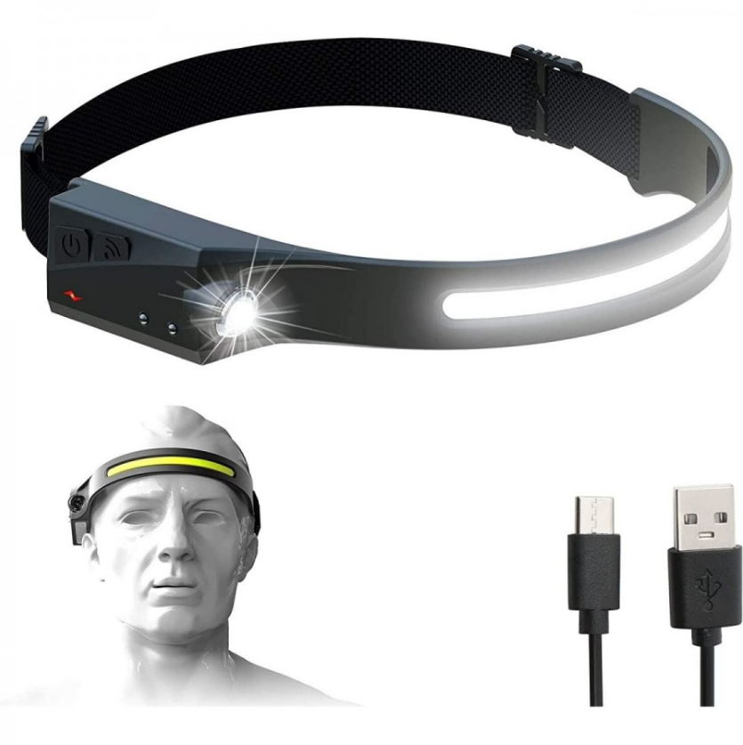 lanterna frontala, pescuit, camping, drumetii, cu senzor miscare, rezistenta la ploaie waterproof, banda leduri COB si XPE