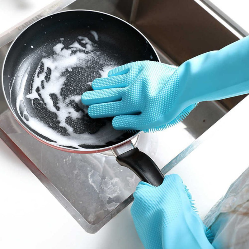 Manusi de silicon multifunctionale inseamna o metoda rapida si eficienta pentru a economisi timp si efort in bucatarie si nu numai!Aveti zilnic multe farfurii de spalat, dar nu vreti sa va distrugeti mainile si totodata sa economisiti timp? Pe manusi se aplica detergent cu care puteti spala si clati vasele rapid si optim. Spalare mai confortabila si mai eficienta. Manusile sunt facute dintr-un silicon eco-friendly si rezista la temperaturi ridicate. Astfel, acestea se pot curata prin fierbere.Manusile de silicon multifunctionale pot fi folosite pentru indepartarea completa a murdariei, fara sa pastreze bacterii si microbi dupa folosire. Ele pot fi spalate si uscate complet, asigurand un mediu curat si igienic! Manusile de silicon multifunctionale pot fi folosite pentru spalarea vaselor, a fructelor si legumelor, curatarea gresiei, a mochetei, cat si pentru pieptanarea animalelor de companie, luand astfel tot parul cazut si scutindu-va de curatenie in plus!Manusile de silicon multifunctionale pot fi folosite chiar si pentru spalarea masinii, cat si pentru curatarea instalatiilor sanitare, deoarece textura moale de silicon indeparteaza murdaria complet fara a lasa zgarieturi sau pete!