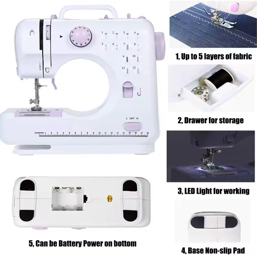 Masina de cusut multifunctionala cu accesorii portabila FHSM-505