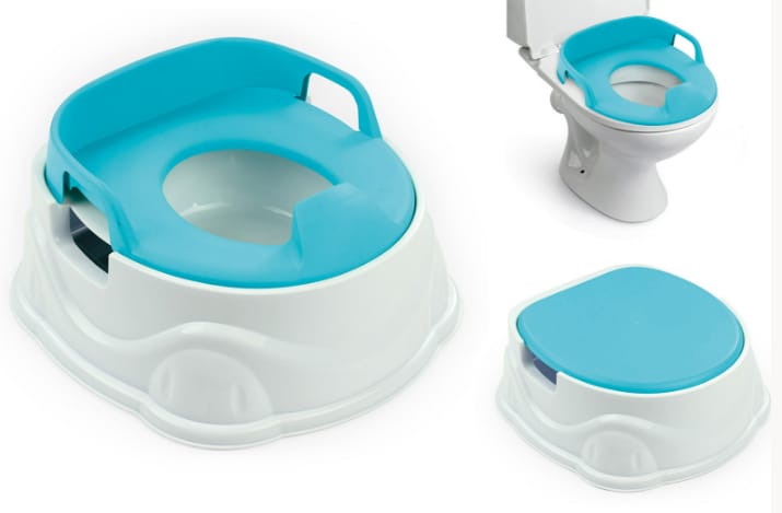Pe măsură ce copilul dvs. trece la următoarea etapă de învățare a toaletei, olița se transformă într-un scaun pentru toaletă și un scăunel cu trepte pentru a-l ajuta să ajungă la toaletă sau chiuvetă.