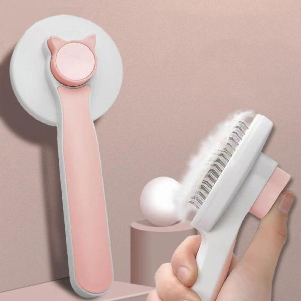 Perie cu autocuratare blana de animale, cu buton