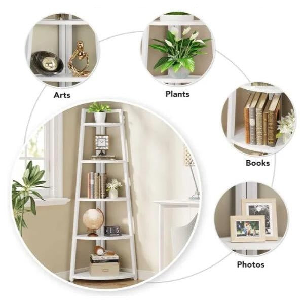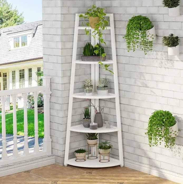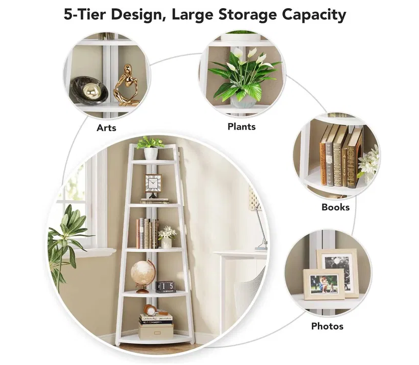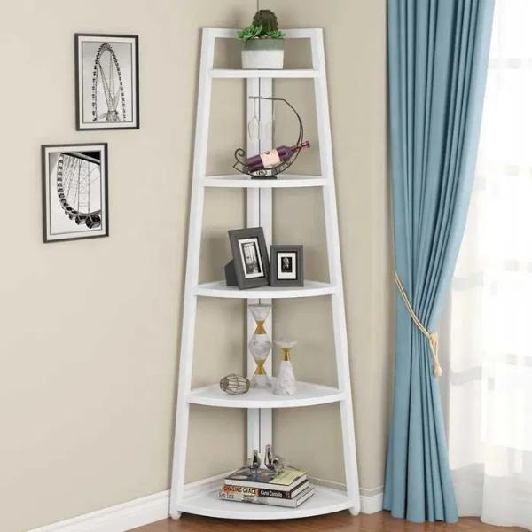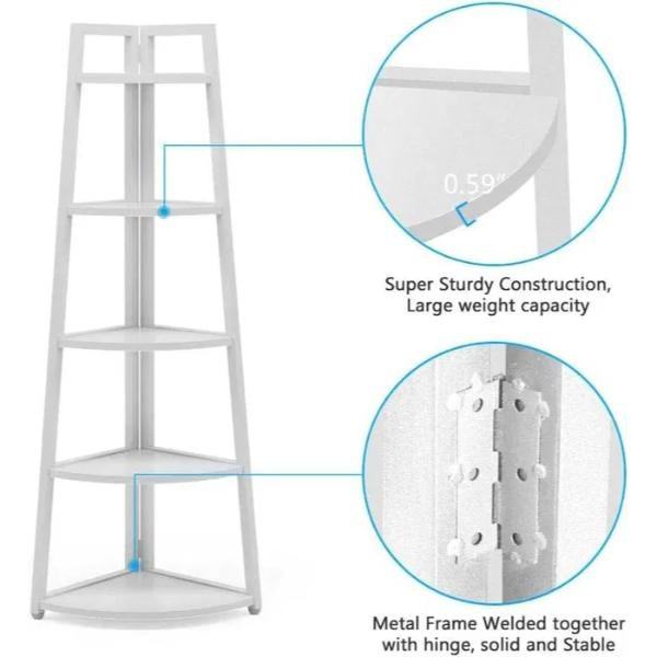 Datorita designului sau de colt, acest raft se potriveste perfect în colturi, fiind ideal pentru spatii mici sau incomode.