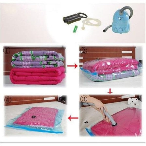 Organizeaza-ti hainele intr-un mod mai eficient si poti salva 75% din spatiu!Sacii de vidat sunt solutia optima de depozitare a hainelor tale in siguranta, ocupand un spatiu mult mai mic decat in mod normal.Sacii de vidat sunt ideali pentru calatorii! Fabricati din material plastic rezistent, sacii de vidat iti vor proteja lucrurile care raman intacte, deoarece la deschidere revin la dimensiunea nomala. Nu ai nevoie decat de un aspirator pentru a scoate aerul si a forma vidul.In sacii de vidat poti depozita haine, plapumi, paturi, jucarii de plus reusind in acelasi timp sa le protejezi de: murdarie, insecte, mucegai, mirosuri neplacute, apa.Avantajele folosirii sacilor de vidat:Castigi pana la 75% din spatiuSacii sunt realizati din polietilena si nylon.Se poate utiliza orice tip de aspirator / vacuumSacii nu sunt recomandati pentru depozitarea obiectelor cu margini ascutite deoarece acestia s-ar putea deteriora.Cand depozitezi obiectele asigura-te ca acestea sunt uscate!Ofera protectie completa impotriva umezelii, insectelor si murdarie, animale de casa, praf si mucegaiDepozitare practica, ce protejeaza in totalitate de insecte, praf si umezealaIdeali pentru calatorii!Potrivite pentru depozitare in casa, cat si pentru atunci cand plecati intr-o calatorieSunt reutilizabili.Mod de utilizare:Desfaceti fermoarul si introduceti obiecteleInchideti fermoarul folosind clipsul din dotare.Puneti furtunul aspiratorului pe orificiul de vid, dupa ce ati indepartat capacul acestuia si porniti aspiratorul.Dupa aspirarea totala aerului din sac, deconectati furtunul si insurubati capacul.Orificiul de vid este prevazut cu supapa impiedicand asftfel devidarea sacului, pana la insurubarea capacelului. Cand doriti sa scoateti lucrurile trebuie doar sa deschideti fermoarul. Sacul de vid se poate refolosi.Dimensiune Saci vid : 60x80cm.