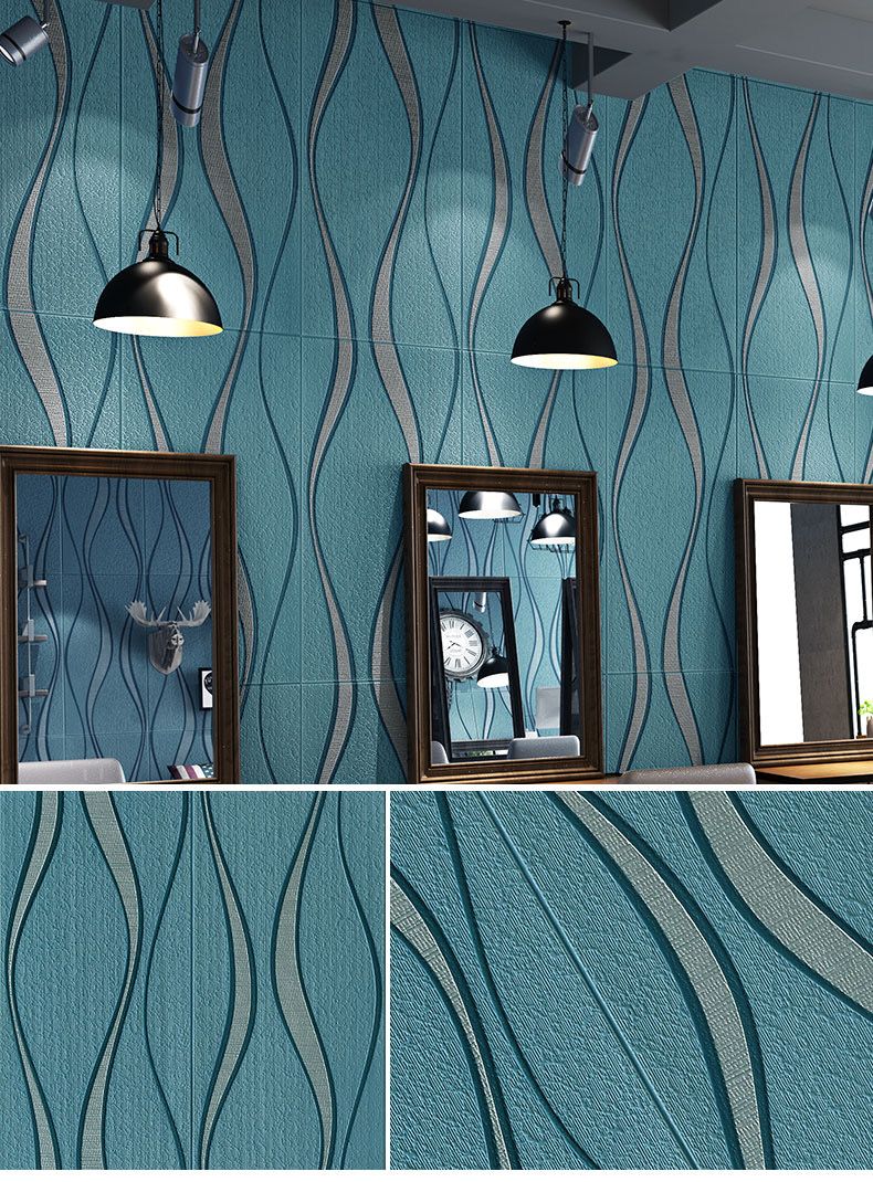 Set 10 x Tapet 3D Autoadeziv cu model albastru cu dungi gri