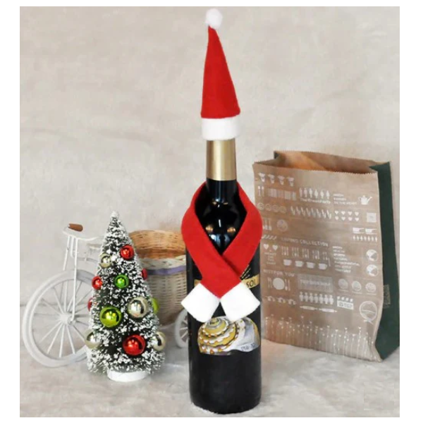Set 5 ornamente de Craciun pentru sticle, cu fular si caciulita