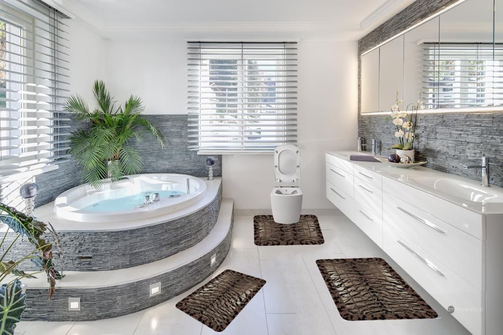 Pachetul de livrare include 1 covoras pentru baie, 1 covoras pentru suportul de la chiuveta, 1 covoras pentru wc