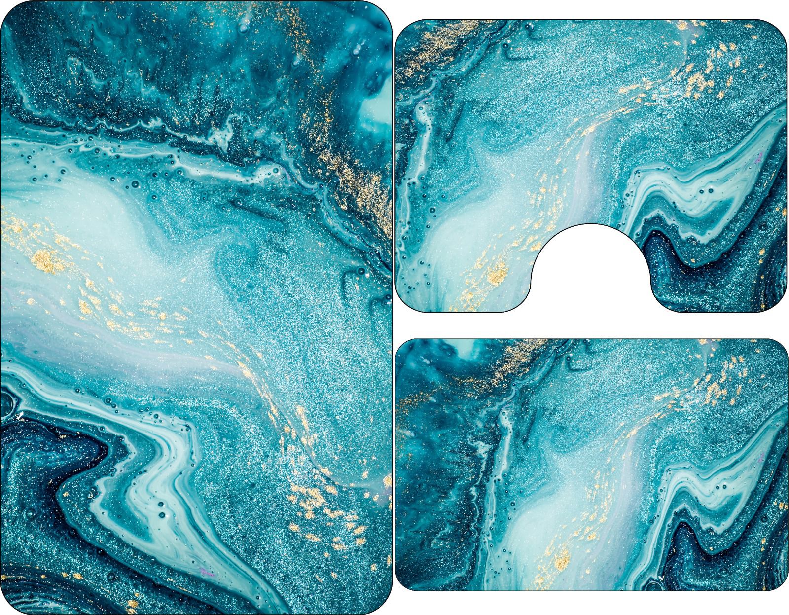Pachetul de livrare include 1 covoras pentru baie, 1 covoras pentru suportul de la chiuveta, 1 covoras pentru wc