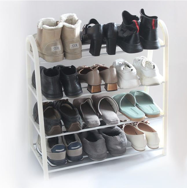 Suport pentru pantofi cu 4 rafturi din tuburi metalice, usor de asamblat si foarte practic.