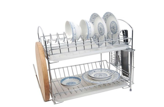 Suport vase cromat cu tava din plastic este fabricat din otel rezistent cromat, fiind prevazut cu o etajera ce permite scurgerea a 18 farfurii, iar pe partea de jos a suportului este prevazuta cu tava colectoare.Suportul de vase este practic, usor de montat si extrem de util pentru bucataria dumneavoastra. Partea de sus este destinata pentru asezarea farfuriilor iar in partea de jos se pot usca paharele si canile.Lateralele sunt prevazute cu doi suporti, unul pentru tacamuri si unul pentru cani, astfel se poate folosi in functie de necesitatile dumneavoastra. Suport vase supraetajat,cu suport tacamuri,suport 6 pahare si tava de scurgere este ideal pentru a usca vasele usor, acestea ramanand perfect curate. Caracteristici generale suport vase supraetajat cu 2 nivele pentru bucatarie:- partea de sus este potrivita pentru a aseza farfuriile, iar in partea de jos puteti aseza paharele si canile - partile laterale le poti folosi in functie de necesitatile dumneavoastra - tava si suportul pentru tacamuri sunt din plastic usor de spalat - doua nivele de farfurii, boluri, si cani- carlige laterale pentru pahare- suport detasabil pentru tacamuri- tava de jos pentru colectare apa este detasabila- fabricat din material cromat rezistent la rugina - dimensiuni: 390mm x 110mm x 250 mm- greutate produs: 1,4 Kg