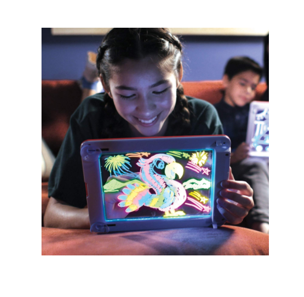 Plansa Magica pentru desenat 3D, Creativitate pentru copii, cu lumini LED, Arta cu desene si schite fosforescente luminateAduceti arta la viata cu ajutorul acestei planse magice! O plansa pentru desenat care aduce multa distractie si care va lumina “operele de arta” ale celor mici! O modalitate noua si interesanta de a desena, schita si crea! Ecranul unic al plansei magice este transparent! Pur si simplu apasati butonul pentru a putea vedea magia artei super stralucitoare! Alegeti dintre 8 efecte luminoase diferite si colorate! Bucurati-va de “arta” creata de cei mici, plina de culori interesante si multe altele! Cand au terminat un desen, stergeti pur si simplu ecranul pentru ca sa poata crea din nou! Nu exista nicio limita la ceea ce poti face cu ajutorul plansei magice! Ecranul clar va permite si sa jucati jocurile preferate precum tic-tac-toe, spanzuratoarea sau chiar sa rezolvati un labirint!Cel mai demn de evidentiat este faptul ca, Plansa Magica face ca invatatul sa fie distractiv! Este excelenta si pentru aprofundarea ortografiei si a aritmeticiii! Plansa Magica te poate insoti oriunde! Designul portabil ajuta la ore de distractie pentru pasageri in timpul plimbarilor lungi cu masina si implicit la multa liniste necesara concentrarii pentru conducatorii autovehicului! Faceti din fiecare “opera de arta” o capodopera stralucitoare cu ajutorul acestei Planse Magice! Garanteaza distractie la maxim pentru intreaga familie: aceasta nu este numai o simpla jucarie, ci si o punte de comunicare intre tine si copil. Lasati-va copiii sa deseneze liber alaturi de dvs si de prieteni pentru a-si impartasi imaginatia alaturi de multa fericire.