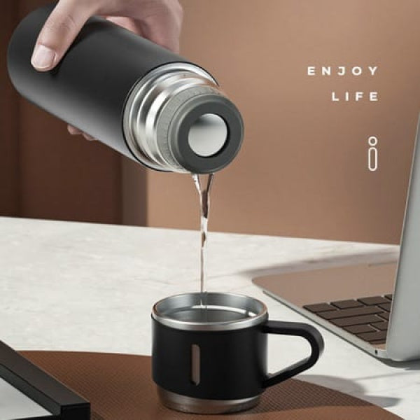 Termos si 2 cani, Otel Inoxidabil si Silicon, 500 ml, Anti-alunecare, Usor si Portabil, Izolat Termic, pentru bauturi calde sau reci