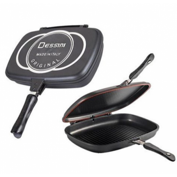 Tigaia grill dubla este fabricata din aluminiu turnat si 3 straturi de granit antiaderent.